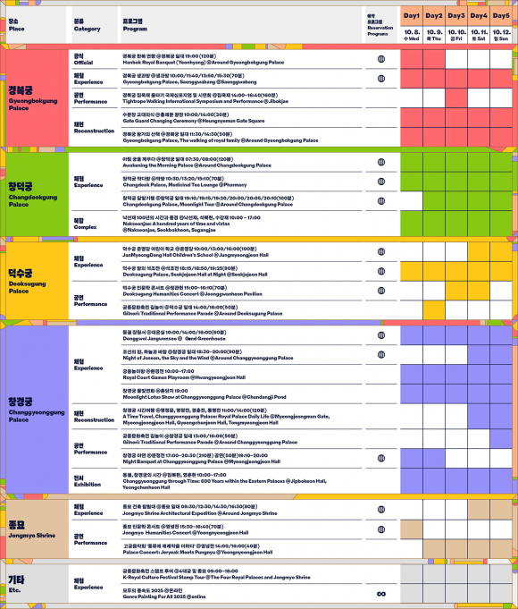 2025 가을 궁중문화축전은 오는 10월 8일부터 12일까지 5일간 진행되며, 주요 프로그램은 사전 예약을 통해 참여할 수 있다.